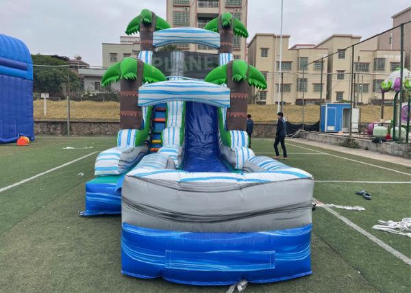 Commercial Jungle Palm Tree Theme Blue Backyard Kids Inflatable Water Slide With Pool